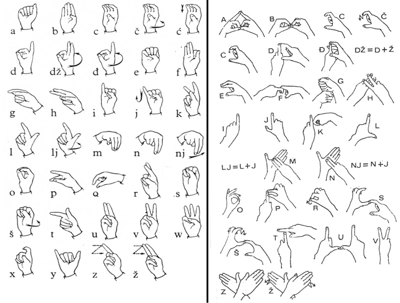 Slika 1. Jednoručna i dvoručna znakovna abeceda